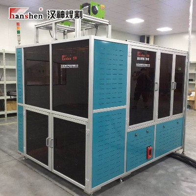 設備由機器人自動上下料系統、視覺掃碼識別系統、激光焊接系統、煙塵凈化系統、水冷系統、耐壓測試檢測系統、不合格品挑揀分離系統等;