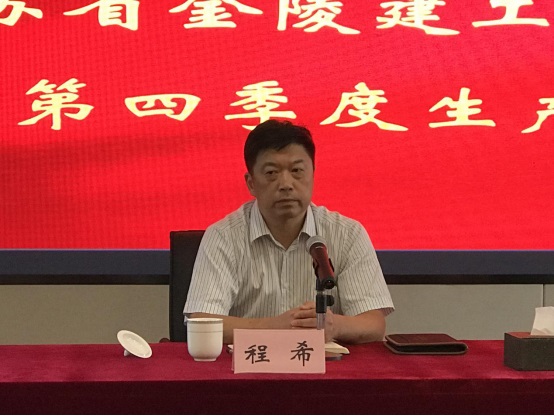 隨后總經理程希同志總結集團公司在上一季度中取得的成績與進步,指出存在的問題和隱患。重點強調在四季度把握好“工期、質量、安全”三個核心點,確保在建工程按質按期完成交工。