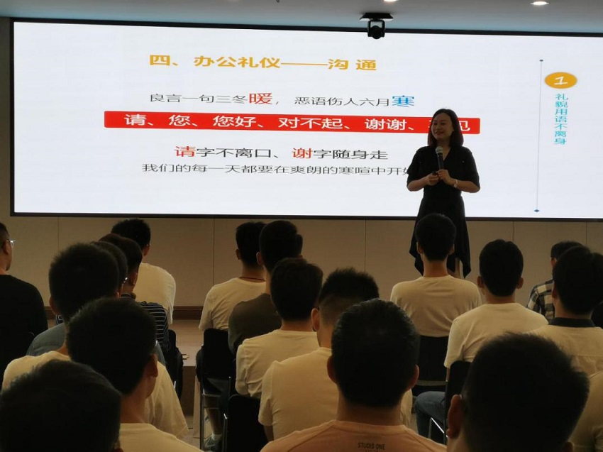 文化是看不見的禮儀,禮儀是看得見的文化。為增強員工商務禮儀知識,提高員工職業素養、提升企業形象,201975日上午,集團公司人力資源部特邀請智聯招聘講師,在南京總部大樓多功能廳舉辦“商務禮儀”培訓。南京機關全體員工及2019年新進應屆生共計129人參加培訓。