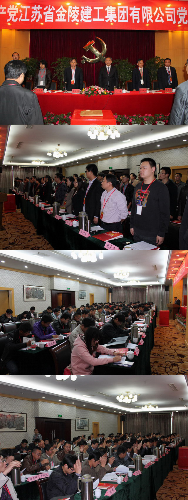 • 2012年11月3日,江蘇省金陵建工集團有限公司召開了黨員大會,選舉產生了中國共產黨江蘇省金陵建工集團有限公司第一屆委員會委員。江蘇省住房和城鄉建設廳直屬機關黨委丁舜祥、王永華二位領導到會指導,集團公司83名黨員參會,會議由張書記主持。   會議聽取并審議了范廣峰同志,代表上一屆黨總支作的題為《真抓實干、開拓創新,為實現我公司躋身于江蘇名企行列而努力奮斗》的工作報告。與會人員一致認為《報告》內容客觀公正,實事求是地總結了過去七年公司取得的成績和存在的問題,同時提出了未來五年的發展目標和奮斗方向。   大會按照無記名、差額選舉的方式,選舉產生了新一屆黨委會委員7名。 丁舜祥副書記代表江蘇省住房和城鄉建設廳直屬機關黨委,向新當選的黨委委員表示祝賀,并向全體黨員對公司黨建工作、企業全面發展所做出的貢獻表示衷心感謝,并對新一屆黨委提出了具體的要求。   最后,大會在《國際歌》聲中閉幕